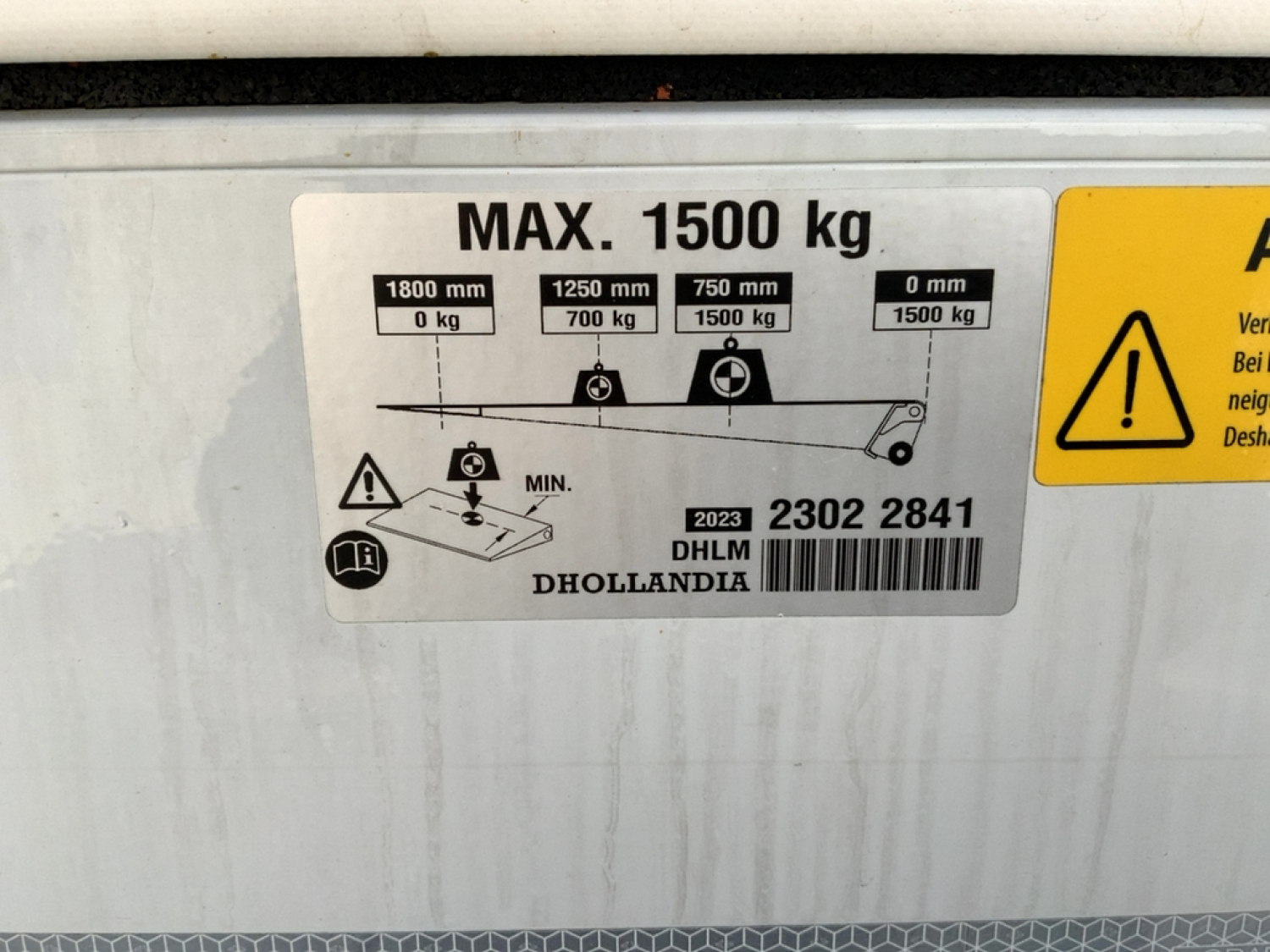 Tail lift capacity 1500