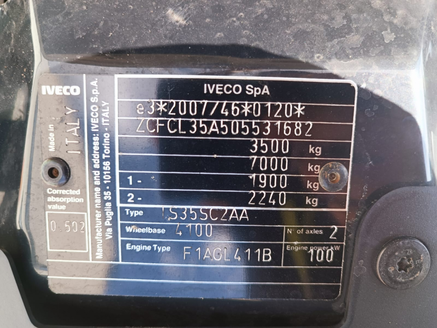 Type IVECO DAILY 35S14 - FURGONE DI SERIE - p. 4100 -