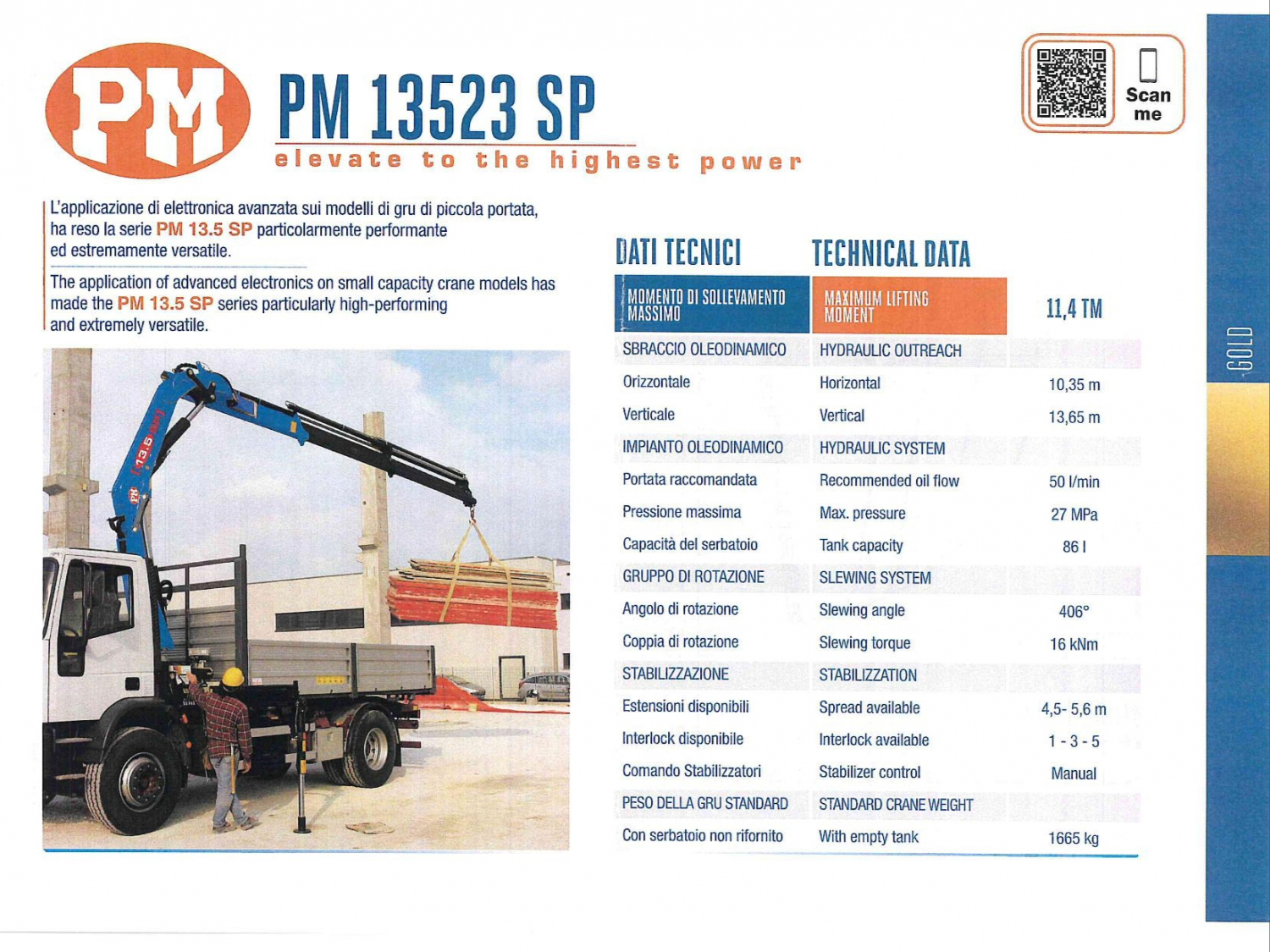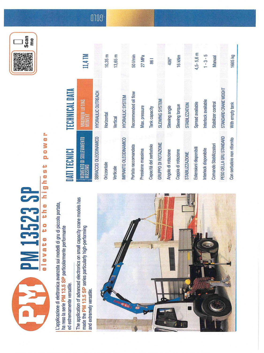 - SBRACCIO VERTICALE MASSIMO = 13,65mt