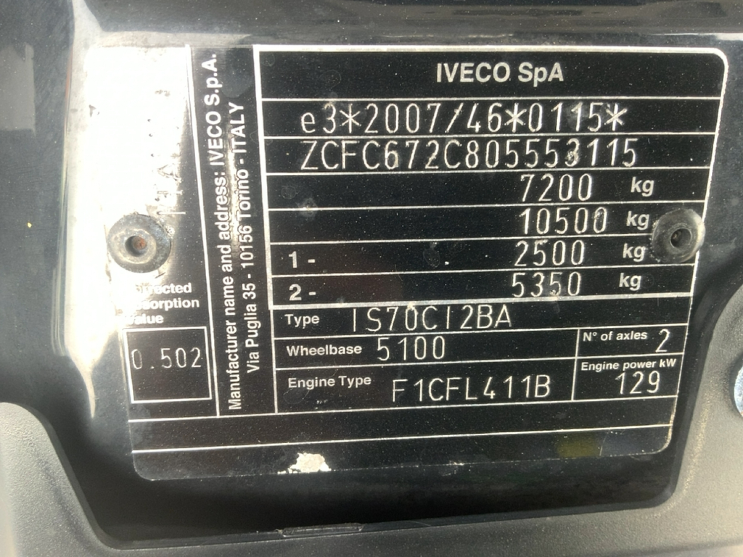 Type IVECO DAILY 70C18H A8/BAL - BOX + SPONDA DHOLLADIA -