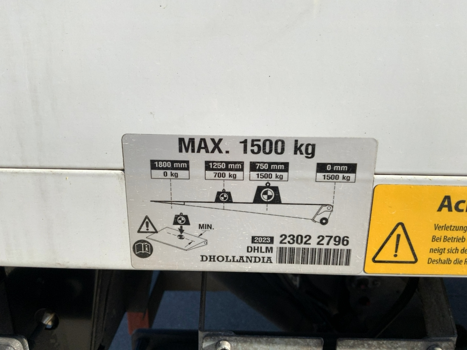 Tail lift capacity 1500