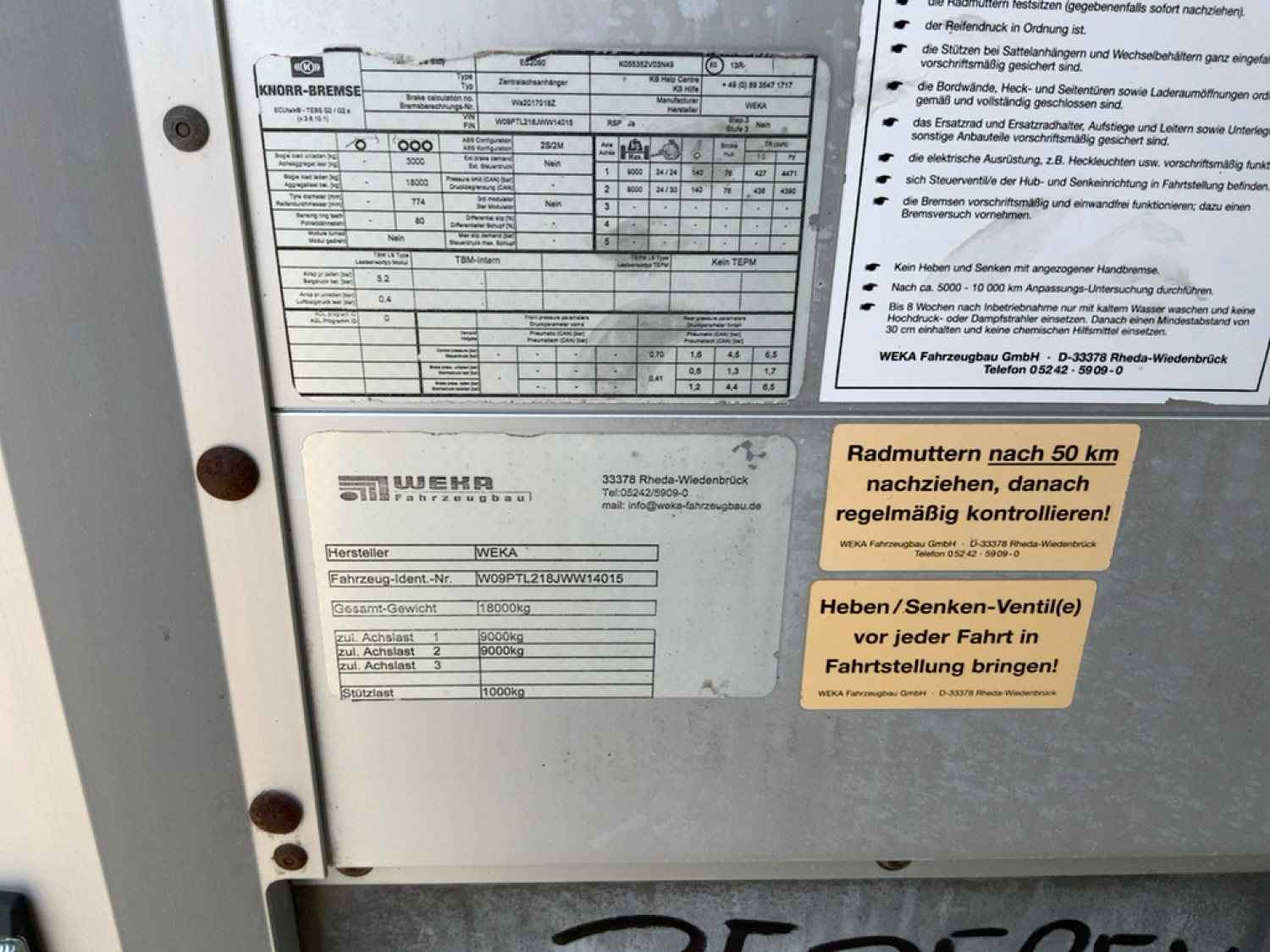 Type RIMORCHIO BIGA WEKA CENTINATO