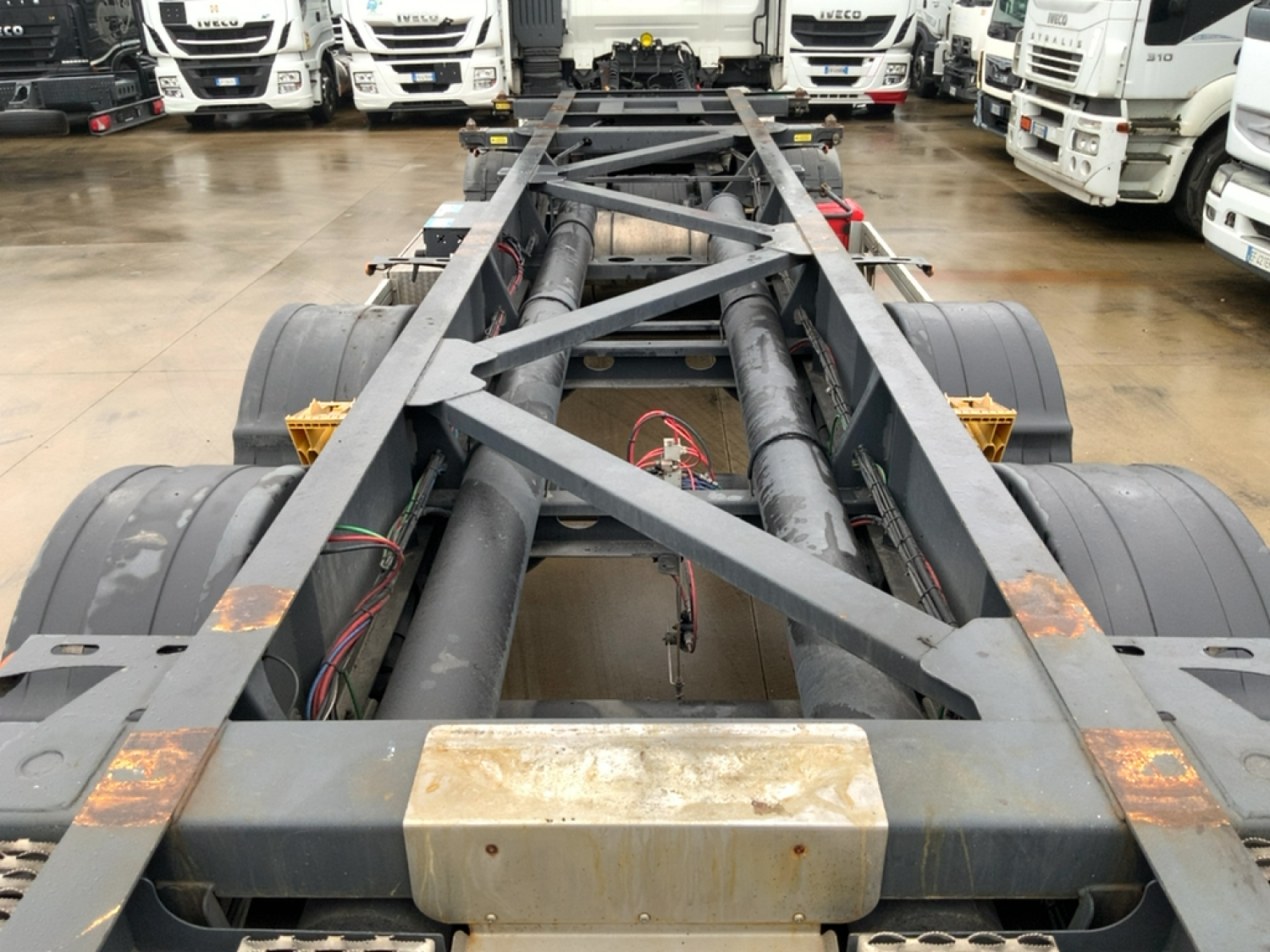 PORTA CONTAINER 20' / 30' - PORTA TANK CONTAINER IN ADR 20' / 30' CON VASCA DI CONTENIMENTO PER SVERSAMENTO LIQUIDI - PEDANA CALPESTABILE RIBASSATA PER L'OPERATORE - PORTA TUBI E CASSETTONE SOTTOTELAIO - ADR AT - FL -OX - EXII - EX III - SCADENZA REVISIONE 11/2026 - DISCHI IN LEGA - 1° ASSE SOLLEVABILE - 3° ASSE SOLLEVABILE E STERZANTE